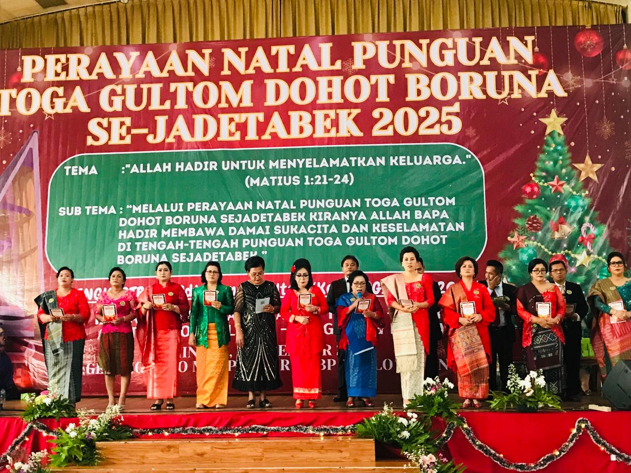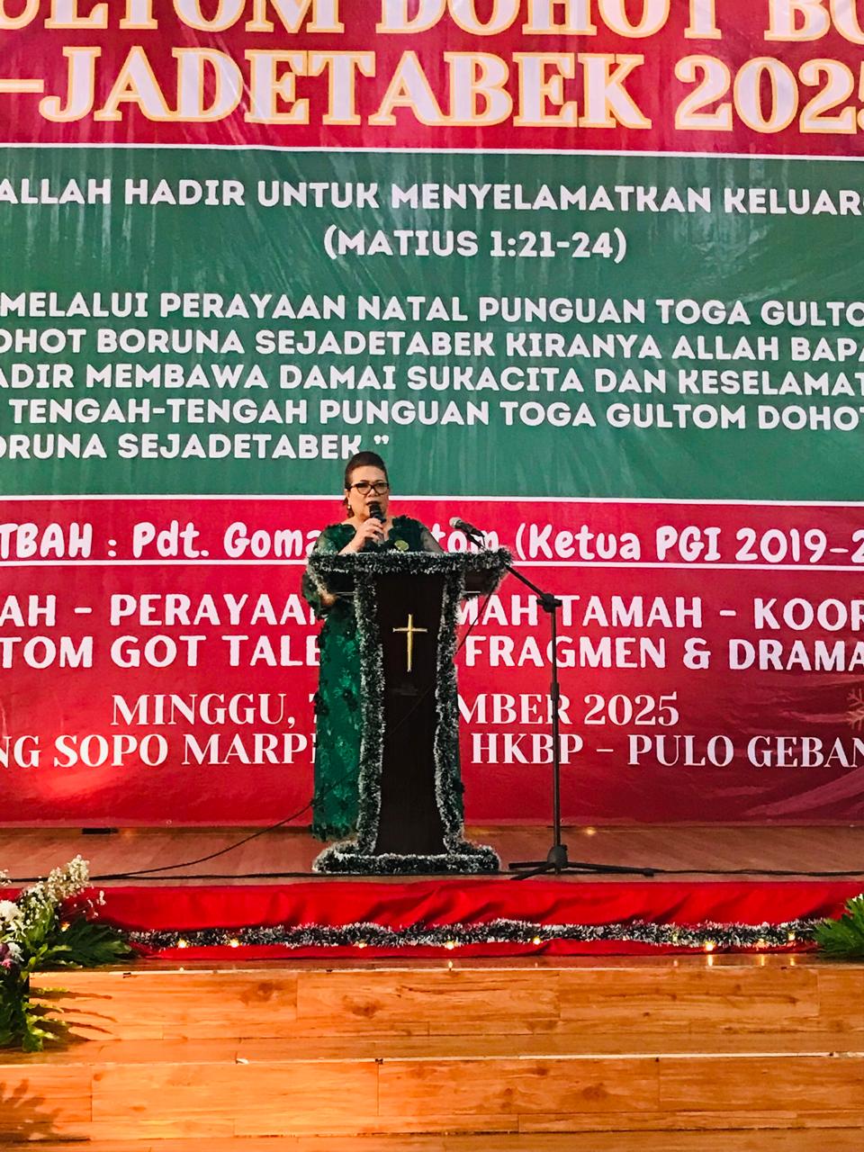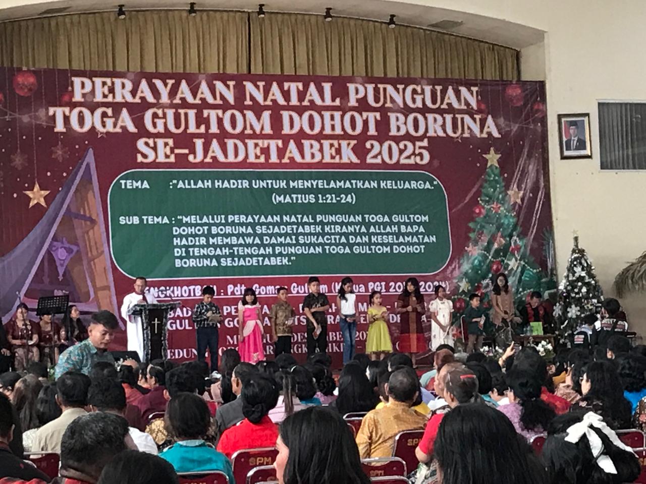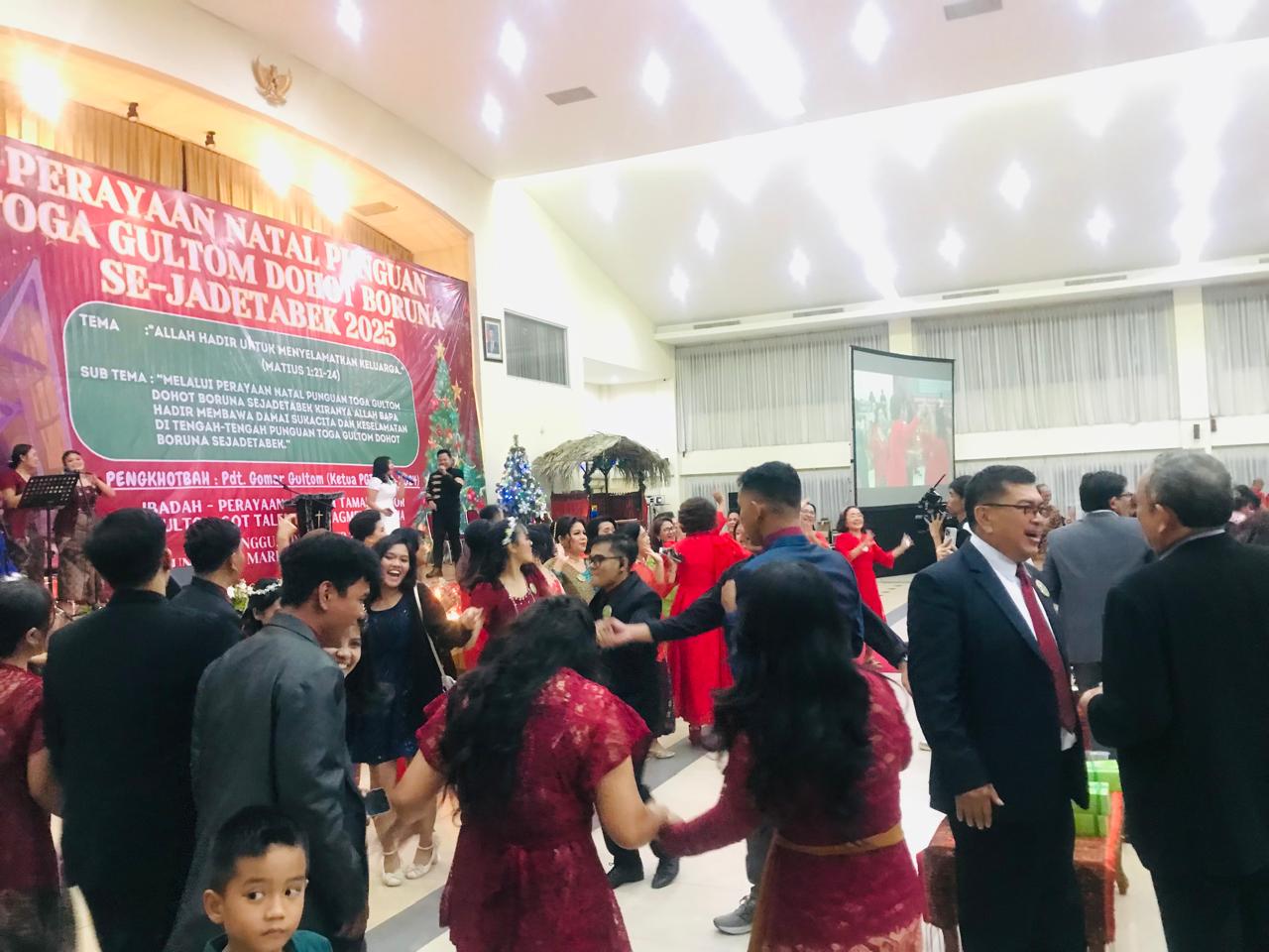 Narwastu.id – Perayaan Natal keluarga besar Punguan Toga Gultom dohot Boruna Se-Jadetabek sukses digelar pada Minggu, 7 Desember 2025 di Gedung Sopo Marpingkir HKBP, Jakarta Timur. Perayaan Natal ini mengusung tema “Allah Hadir untuk Menyelamatkan Keluarga (Matius 1:21-24)”, dan sub tema “Melalui perayaan Natal Punguan Toga Gultom dohot Boruna Se-Jadetabek, kiranya Allah Bapa hadir membawa damai sukacita dan keselamatan di tengah-tengah Toga Gultom dohot Boruna Se-Jadetabek.” Acara diawali dengan lagu pujian Natal yang dilanjutkan dengan pembacaan liturgi penciptaan dan liturgi kedatangan Juru Selamat yang dilakukan mulai dari anak-anak, remaja, kaum ibu dan kaum bapak.