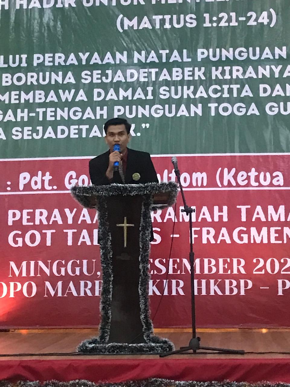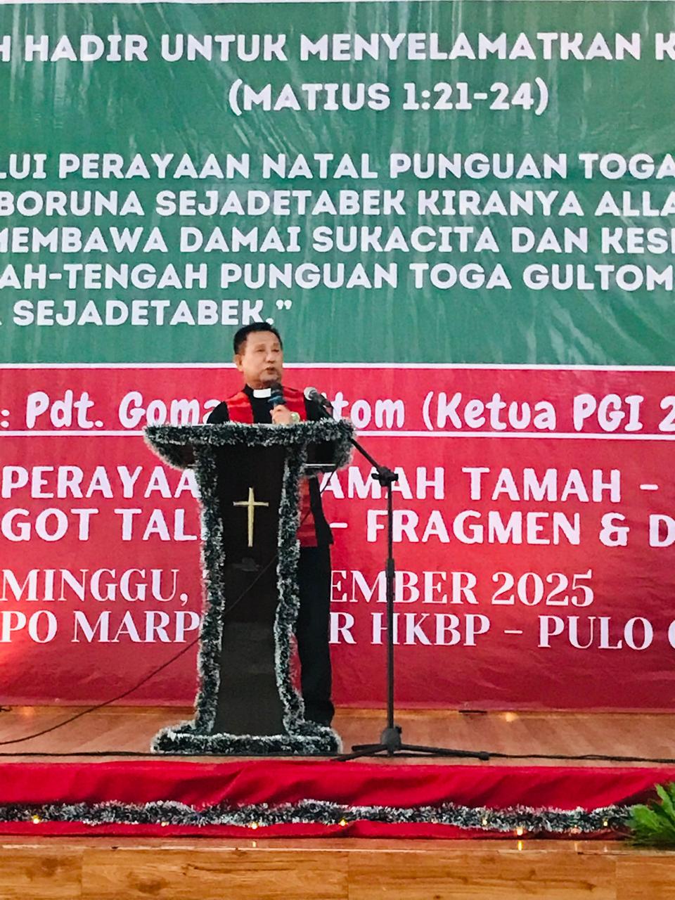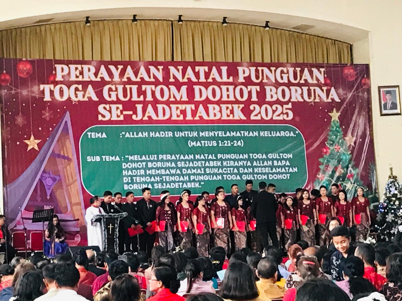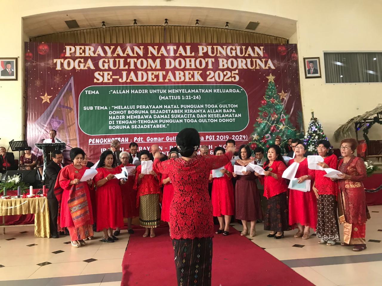 Narwastu.id – Perayaan Natal keluarga besar Punguan Toga Gultom dohot Boruna Se-Jadetabek sukses digelar pada Minggu, 7 Desember 2025 di Gedung Sopo Marpingkir HKBP, Jakarta Timur. Perayaan Natal ini mengusung tema “Allah Hadir untuk Menyelamatkan Keluarga (Matius 1:21-24)”, dan sub tema “Melalui perayaan Natal Punguan Toga Gultom dohot Boruna Se-Jadetabek, kiranya Allah Bapa hadir membawa damai sukacita dan keselamatan di tengah-tengah Toga Gultom dohot Boruna Se-Jadetabek.” Acara diawali dengan lagu pujian Natal yang dilanjutkan dengan pembacaan liturgi penciptaan dan liturgi kedatangan Juru Selamat yang dilakukan mulai dari anak-anak, remaja, kaum ibu dan kaum bapak.