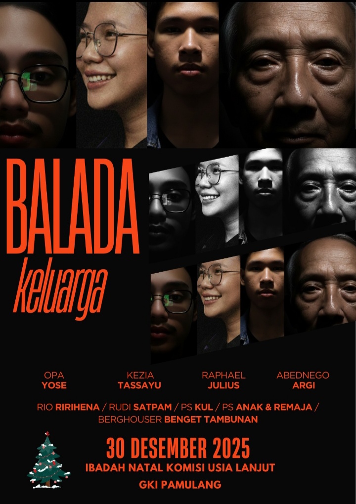 Narwastu.id – Natal Komisi Usia Lanjut (KUL) GKI Pamulang, Tangerang Selatan, Banten, yang diadakan pada Selasa, 30 Desember 2025 lalu, mungkin merupakan perayaan Natal yang berbeda dari tahun-tahun sebelumnya. Dihadiri oleh cukup banyak anggota KUL GKI Pamulang, perayaan Natal yang diadakan di ruang Pniel GKI Pamulang itu juga mengundang beberapa perwakilan jemaat lansia gereja-gereja sekitar. Diawali dengan pujian “Titian Kasih” yang dinyanyikan oleh Caroline Tumbo, liturgi malam itu mengalir dalam bentuk fragmen sesuai besutan Steven Lay Raga, sutradara malam itu, dengan judul “Balada Keluarga.”