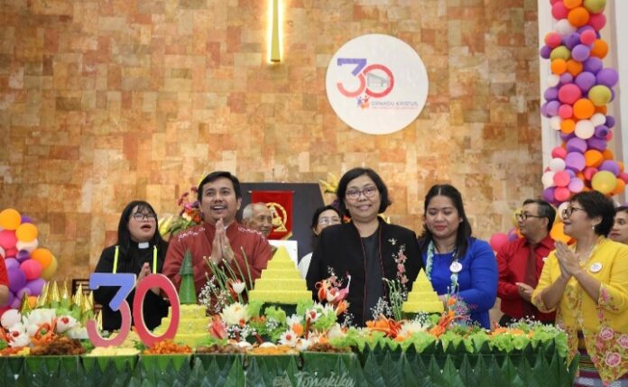 Narwastu.id – Saat merayakan ulang tahun ke-30, GKI Pamulang, Tangerang Selatan, Banten, mengadakan ibadah syukur tepat di hari ulang tahun 23 September 2025 lalu. Bertempat di ruang Pniel GKI Pamulang, ibadah yang dipimpin oleh Pdt. Debora R.S. Simanjuntak (GKI Kota Wisata), berlangsung hikmat dan dihadiri cukup banyak jemaat dan tamu undangan beberapa gereja yang menjadi tetangga GKI Pamulang, serta perwakilan dari FKUB Kota Tangerang Selatan. Dalam khotbahnya, Pdt. Debora mengajak jemaat untuk melihat tiga hal penting dalam usia gereja ke-30 ini. Pertama, jangan beri ruang bagi kesombongan di saat kita merasa sudah mencapai apa pun di usia ini. Karena semua yang dimiliki sampai saat ini adalah kasih karunia Tuhan.