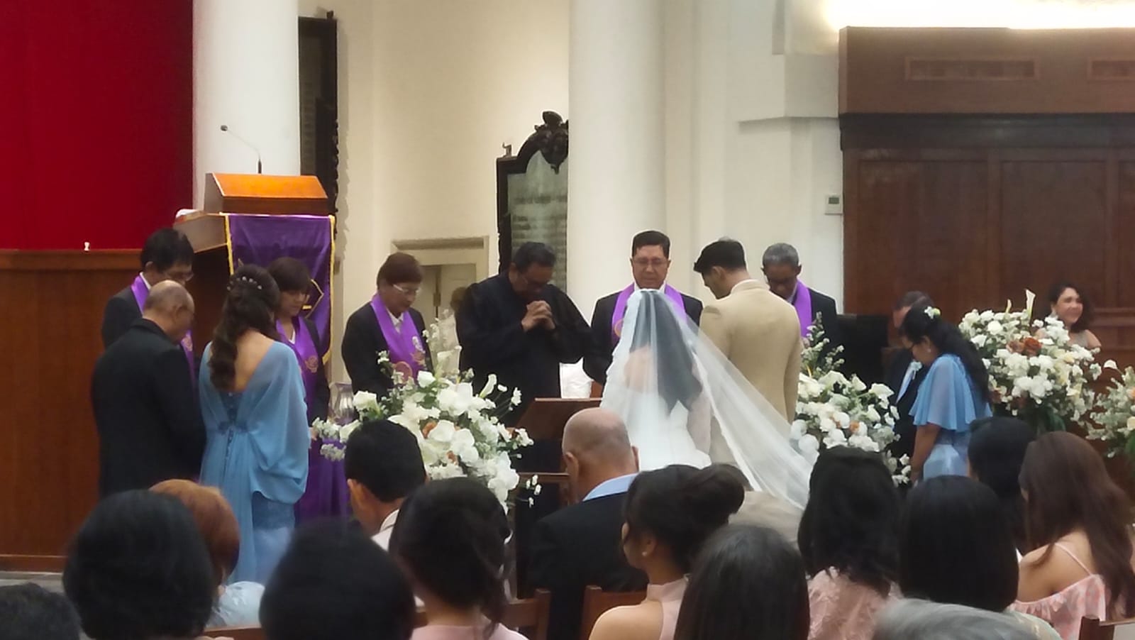 Ibadah peneguhan dan pemberkatan perkawinan yang dipimpin oleh Pdt. Nugroho Yudhi Rumpoko (GKI Bintaro) tersebut dimulai tepat pukul 10.00 WIB, saat Rio dan isteri menggandeng mempelai wanita berjalan menuju altar diiringi lagu “Grace Alone” yang disenandungkan Jascha Ririhena bersama Sound of Hope, disaksikan ratusan pasang mata jemaat yang hadir pagi itu memberi doa restu mereka bagi kedua mempelai yang berbahagia.